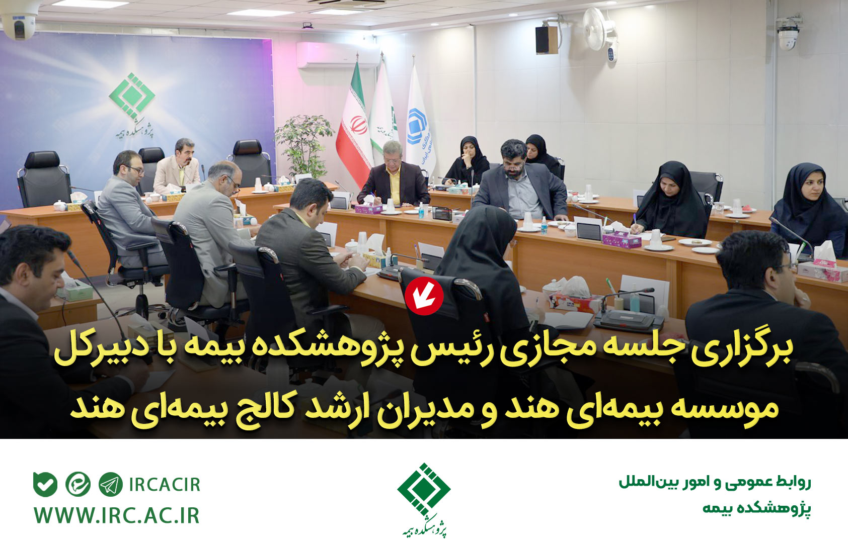 برگزاری جلسه مجازی رئیس پژوهشکده بیمه با دبیرکل موسسه بیمه ای هند و مدیران ارشد کالج بیمه ای  هند