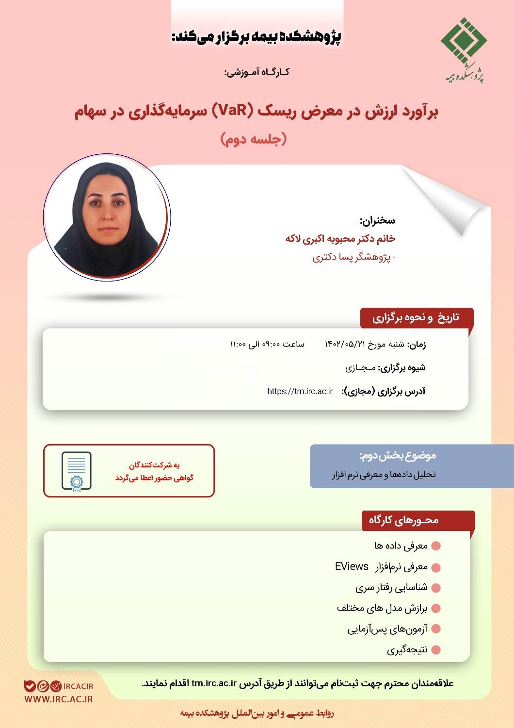 دومین جلسه کارگاه آموزشی برآورد ارزش در معرض ریسک (VaR) سرمایه گذاری در سهام