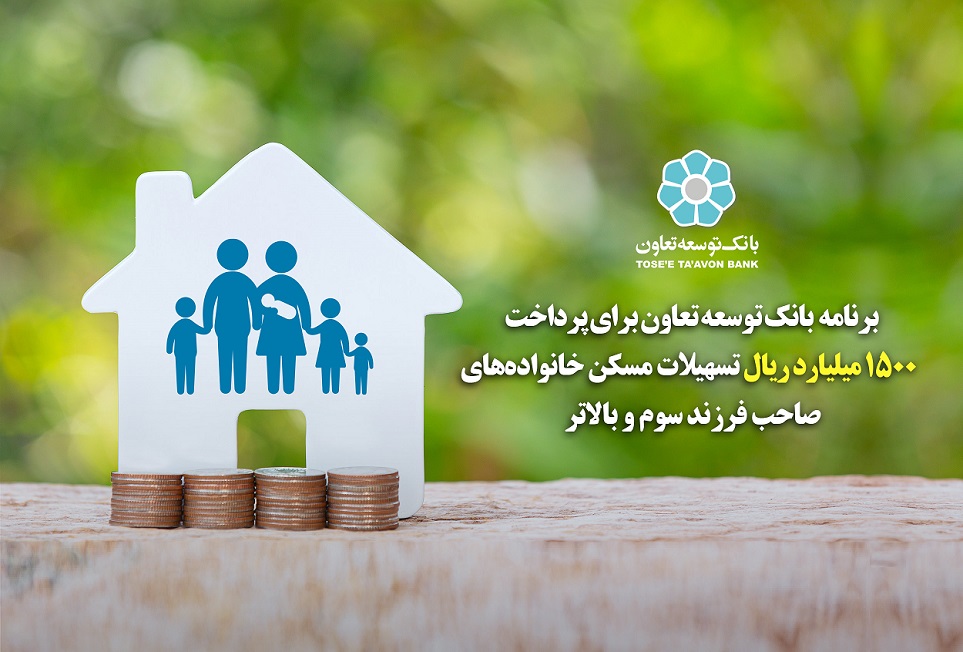 برنامه بانک توسعه تعاون برای پرداخت 1500 میلیارد ریال تسهیلات مسکن خانواده های صاحب فرزند سوم و بالاتر