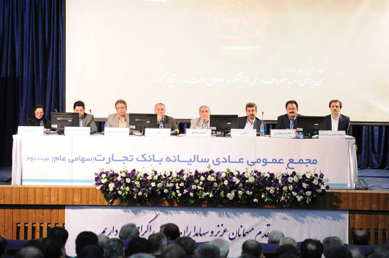 به گزارش پایگاه تحلیلی خبری بانک و صنعت به نقل از  بانک تجارت ، در این جلسه که صبح روز دوشنبه 26مهرماه با حضور بیش از 82 درصد از سهامداران و یا نمایندگان قانونی آنها و نمایندگان سازمان بورس و اوراق بهادار و حسابرس و بازرس قانونی برگزار شد علاوه بر بررسی و تصویب ترازنامه و حساب سود و زیان ، سهامداران در خصوص تقسیم و تخصیص سود سال مالی منتهی به پایان اسفند 1394 تصمیم گیری کردند.