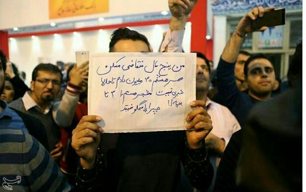 تجمع اعتراضی متقاضیان مسکن مهر پردیس در نمایشگاه مطبوعات