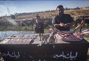 غذاهای عراقی معمولا سنگین است و معدههای ما شاید به قدرت و قوت معدههای افراد ساکن عراق نباشد. از غذاهای مرسوم عراق برنج و لوبیا و نخود پخته است. گاهی این غذاها به دلیل ازدحام جمعیت با عجله و در مدت زمان ناکافی طبخ میشود و اغلب ناپخته و گاهی چرب و سنگین است. پس قبل از خوردن غذا ابتدا آن را تست کنید که غذای مصرفی کاملا پخته و نرم شده باشد. نوع برنجی که در عراق طبخ میشود اغلب هندی است که به مزاج بسیاری از مردم نمیسازد و مخصوصا اگر پخته نباشد موجب یبوست و نفخ میشود. توصیه بر این است پودر زیره سبز، آویشن و نعنا همراه داشته باشید که اگر ناچار به خوردن غذای نفاخ شدید روی غذا میل کنید یا داخل دوغ و ماستهای دربسته بریزید. اعراب در غذاها از روغن زیاد استفاده میکنند به طوری که ماده غذایی در روغن غوطهور میشود و هضم آن را سخت میکند. مثلا فلافل سنگین و تند است و صفرا را بالا میبرد و موجب بیخوابی و خارش پوست میشود و مصرف آن برای گرم مزاجان مناسب نیست.