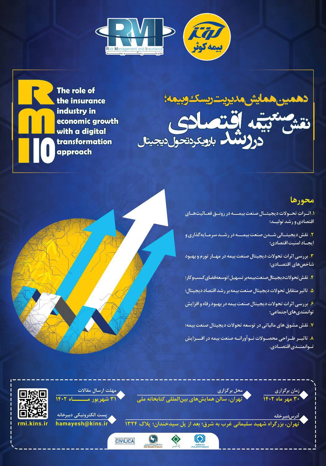 به گزارش بانک و صنعت به نقل از روابط عمومی و امور بین الملل پژوهشکده بیمه، این همایش با حمایت معنوی پژوهشکده بیمه و در هشت محور با عناوین «اثرات تحولات دیجیتال صنعت بیمه در رونق فعالیت های اقتصادی و رشد تولید»، «نقش دیجیتالی شدن صنعت بیمه در رشد سرمایه گذاری و ایجاد امنیت اقتصادی»، «بررسی اثرات تحولات دیجیتال صنعت بیمه در مهار تورم و بهبود شاخص های اقتصادی»، «نقش تحولات دیجیتال صنعت بیمه بر تسهیل/توسعه فضای کسب و کار»، «تاثیر متقابل تحولات دیجیتال صنعت بیمه بر رشد اقتصاد دیجیتال»، «بررسی اثرات تحولات دیجیتال صنعت بیمه در بهبود رفاه و افزایش توانمندی های اجتماعی»، «نقش مشوق های مالیاتی در توسعه تحولات دیجیتال صنعت بیمه»، «تاثیر طراحی محصولات نوآورانه صنعت بیمه در افزایش توانمندی اقتصادی» در تاریخ 30 مهرماه 1402 در محل سالن همایشهای بین المللی کتابخانه ملی برگزار می گردد.