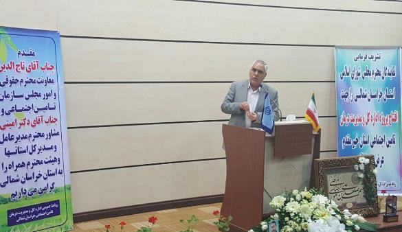 سرپرست اداره کل تأمین اجتماعی خراسان شمالی نیز در این آیین گفت: 105 هزار و 750 نفر بیمه شده اصلی تأمین اجتماعی در این استان 911 هزار نفری وجود دارد. 71 درصد جمعیت شهری و به‌صورت کلی حدود 38 درصد جمعیت کل استان تحت پوشش این سازمان هستند که با احتساب اعضای تحت تکفل هر بیمه شده اصلی، تعداد افراد تحت پوشش این سازمان در استان به 330 هزار نفر می‌رسد.