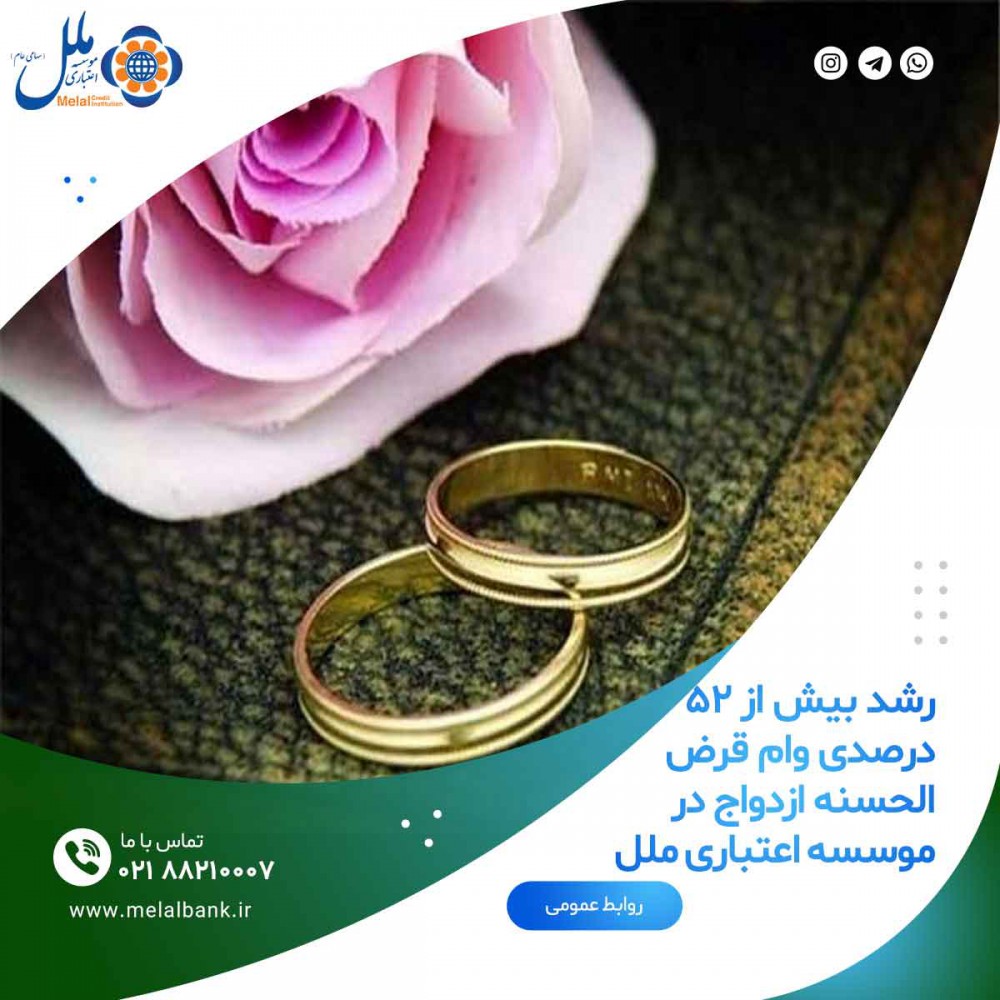 رشد بیش از 52 درصدی وام قرض الحسنه ازدواج در موسسه اعتباری ملل
