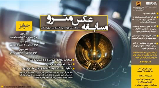 مدیر روابط عمومی و بین‌الملل شرکت راه‌آهن شهری تهران و حومه (مترو) گفت: به مناسبت چهلمین سالگرد پیروزی انقلاب اسلامی "مسابقه عکس مترو" با هدف بهره‌گیری از ظرفیت‌های هنرمندان عکاس و نگاهی نو از دریچه دوربین آنان برای نشان دادن تلاش‌های مغفول مانده پرسنل تلاشگر شرکت مترو تهران به مخاطبان برگزار می‌شود.