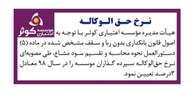 نرخ حق الوکاله موسسه اعتباری کوثر در سال 98 اعلام شد