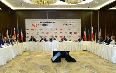 نشست چند جانبه مسئولان راه آهن جمهوری اسلامی ایران، جمهوری آذربایجان، گرجستان، اوکراین و لهستان برای راه اندازی دالان حمل و نقل جنوب – غرب روز دوشنبه در باکو برگزار شد .