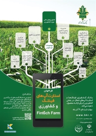 شایان ذکر است استارت آپ های منتخب ، روز 6 دی ماه در مراسم اختتامیه رویداد که با حضور مسئولان بانکی، کشاورزی، دانشگاهی، فرابورس و مشتریان برگزار می شود، برنامه پیشنهادی خود را برای تعامل و کسب و کار با همکاری بانک ارائه خواهند داد.