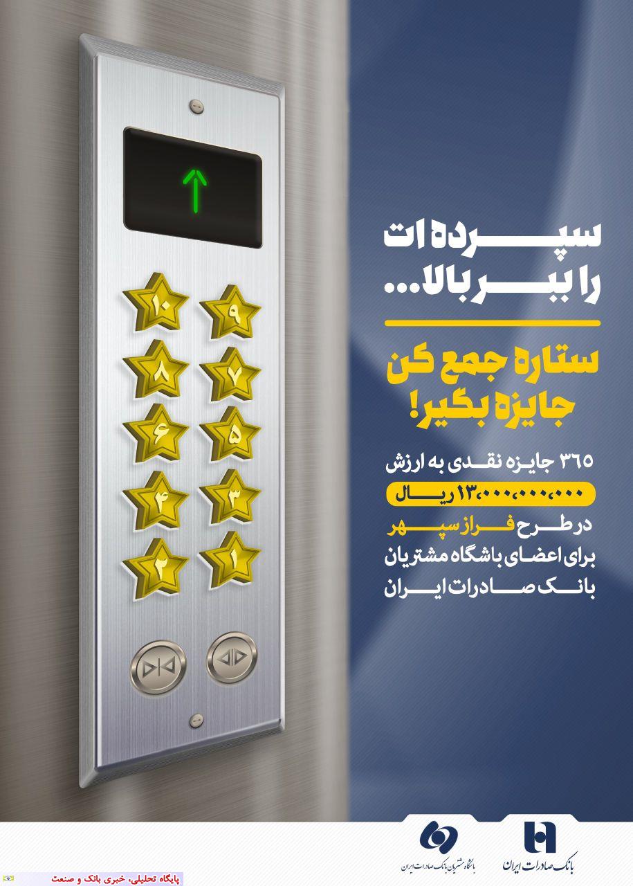 به گزارش پایگاه تحلیلی خبری بانک و صنعت به نقل از روابط عمومی بانک صادرات ایران، مشتریان حقیقی این بانک با مشارکت در طرح «فراز سپهر» باشگاه مشتریان به شرط نگاه‌داشت یا افزایش منابع ارزی و ریالی خود تا پایان بهمن ماه سال 98 به قید قرعه  حدود 13 میلیارد ریال جایزه دریافت خواهند کرد که طی سه ماه اول این طرح 11 درصد به تعداد مشتریان مشارکت کننده در این طرح که میزان منابع  خود را ارتقا داده‌اند، افزوده شده است.