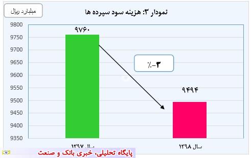 با برنامه ریزی و اهداف کمی تعیین شده و مهم تر از همه، رعایت کامل ضوابط و مقررات بانک مرکزی جمهوری اسلامی ایران در خصوص سودسپرده ها، هزینه های پست بانک ایران مطابق نمودار شماره 3 کاهش یافت. عملکردی نادر در نظام بانکی که در سال مالی 1398 به ثبت رسید ,و از طرفی کل هزینه های بانک به میزان 5% رشد داشته است.