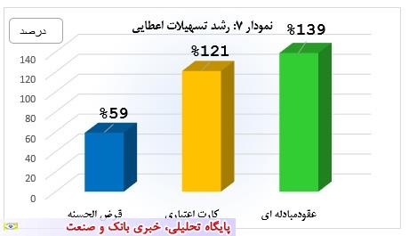 بابرنامه ریزی و اهداف کمی تعیین شده و همچنین رعایت بهداشت اعتباری، تسهیلات اعطایی بانک به میزان 42 درصد رشد داشته است که بیشترین رشد مربوط به عقود مبادله ای می باشد که به شرح نمودار شماره 7 آورده شده است.