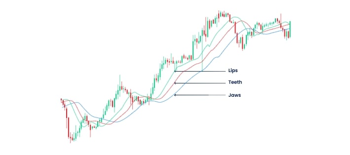 اندیکاتور Alligator یکی از ابزارهای تحلیل تکنیکال است که از سه میانگین متحرک هموارشده (SMMA) تشکیل شده است. این سه خط با نام های «فک» (Jaw)، «دندان ها» (Teeth) و «لب ها» (Lips) شناخته می شوند.