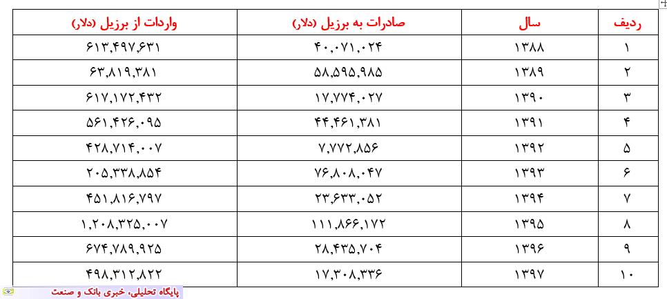 رابطه تجاری کالایی (غیرنفتی) ایران و برزیل که در یک دهه گذشته همیشه ترازش به نفع برزیل مثبت بوده، نوسان زیادی تجربه کرده و اکنون در دوران افول خود به سر می‌برد.